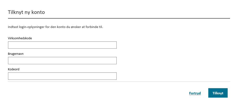 Her kan du indtaste konto-oplysninger, hvis du har adgang til disse.
