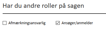 Under ’Roller’ vil du som udgangspunkt altid være angivet som ansøger/anmelder. Har du også andre roller i forbindelse med arbejdet, sætter du også hak i dem.